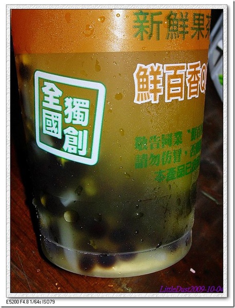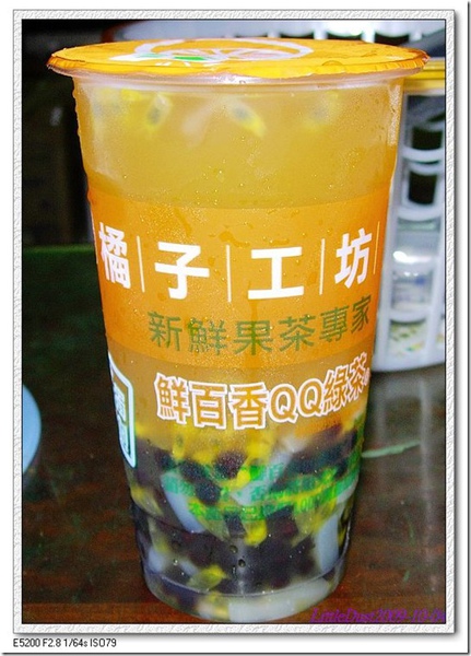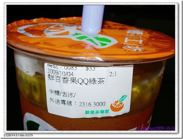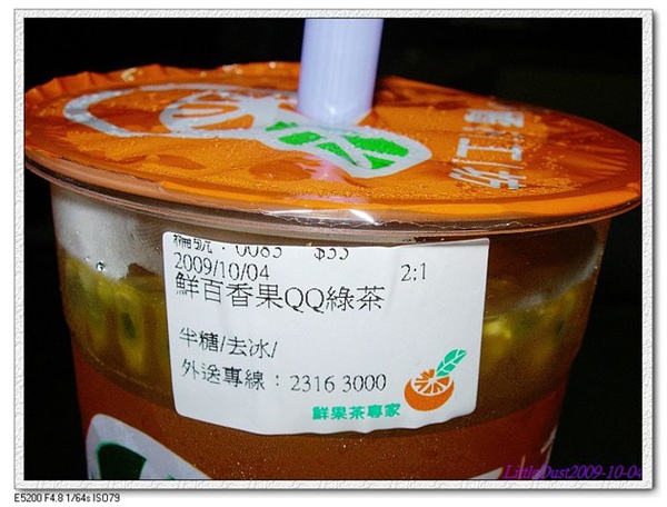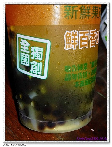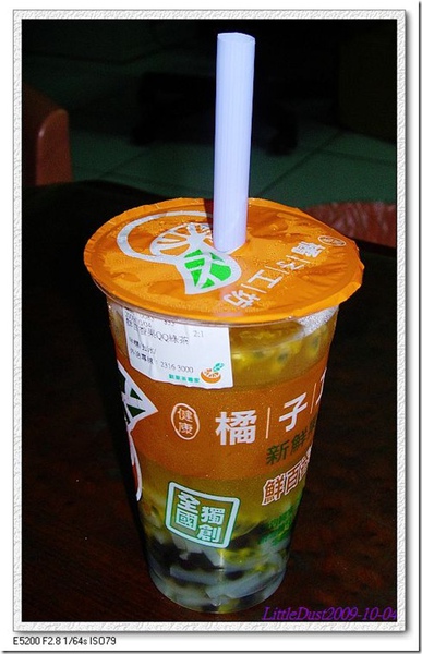 這幾天心情一直很悶,昨天回家中秋節烤肉,今天回台中陪姐去吃同事的喜酒。吃完喜酒,姐帶我去逛了一家"收納之家",小小血拚了一下。在騎車回家的途中,看到橘子工坊,姐聽說這家的鮮百香QQ綠茶很好喝,本來都騎過頭了,還特地再回頭,我下車買了二杯請姐姐喝。回到家喝了幾口,真的還不錯耶!一杯好像是35元吧!?(忘了~"~)