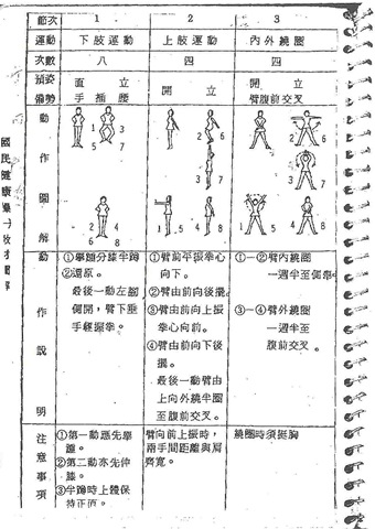 由於許多人聽到懷念的國民健康操之後很想知道體操的作法,本來我是想往事留在回憶中就好了,而且一群人集思廣益回想童年時期的體操也算是聚會的好話題(相關的話題還包括十大建設是哪十大?國父十一次革命的地點依序為?....)。