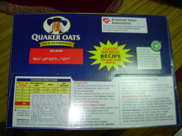 昨天買回來後,看到盒上的食用方法是要煮4-5分鐘,微波爐只要1分鐘,那媽咪怎麼說可以直接泡!???上網查了一下,有人說是生麥片,如果直接泡熱水沒煮,口感會生生的不好吃,也有人提到可以泡半小時就很好吃了,而且還說如果便便不順,吃了以後可以大很多耶!