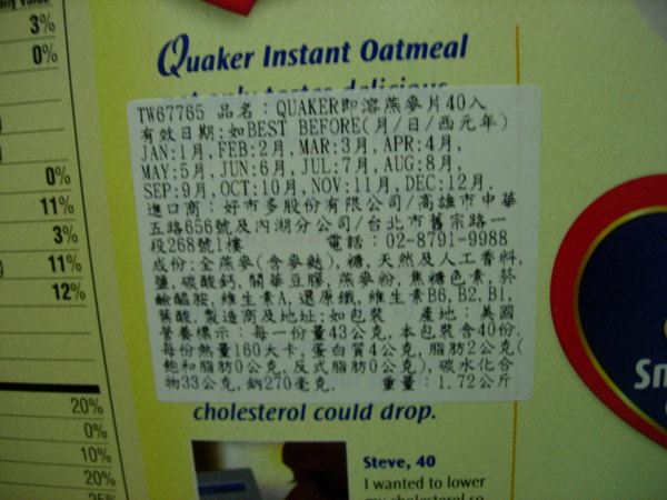 跟昨天買的燕麥一起Post上來,我搶購到2盒,所以剛好一盒給媽咪當母親節禮物,另一盒給爸爸當生日禮物。今天結帳時也聽到有人問起還有賣桂格燕麥片嗎?小姐回答顧客今天沒買!?什麼時候會進貨請去服務台問。