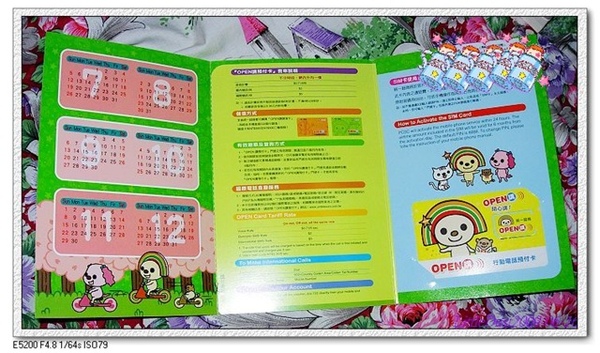 打開第一翻,左手邊是前半年的月曆,右半邊是可愛的OPEN講SIM門號卡。