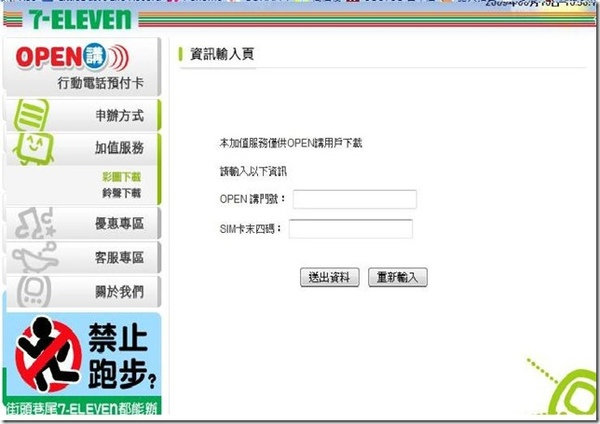 在想要的圖鈴旁按下載圖示""後,網頁會要求使用者先輸入門號和SIM卡末四碼。