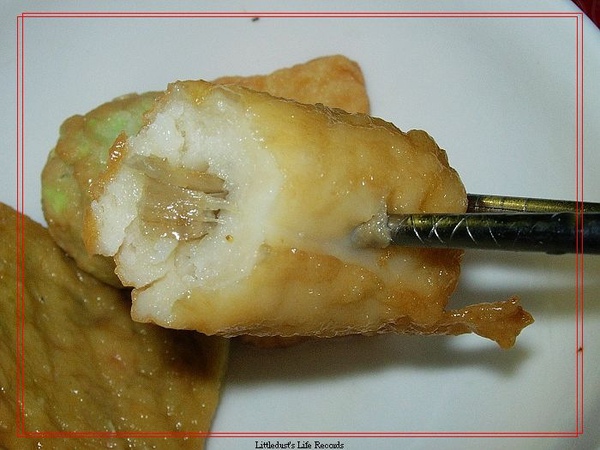 這應該是一口天吧?裡面吃起來軟軟的,有包著蔬菜類,所以吃起來味道不錯,這一定不是野豆腐炸!!