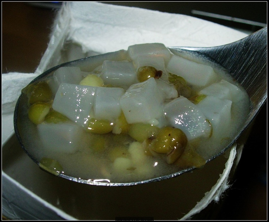不過,綠豆椰果比紅豆燕麥椰果還要大顆,切成四方狀!