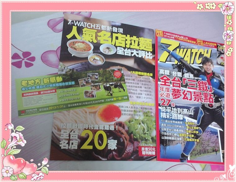 7-watch很超值~有送資料夾、面膜、20大拉麵特輯、桃園埔心門票買一送一
