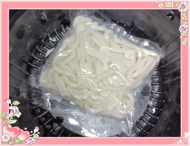 晚餐時先丟完高麗菜後,看到一包烏龍麵耶!